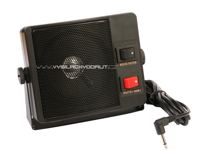 Externí reproduktor s šumovým fitrem a tlačítkem útlumu. Impedance 8 ohmů, příkon 6W, rozměry 112 x 96 x 44 mm, přívodní kabel s 3,5 mm JACK konektorem. Včetně U držáku.