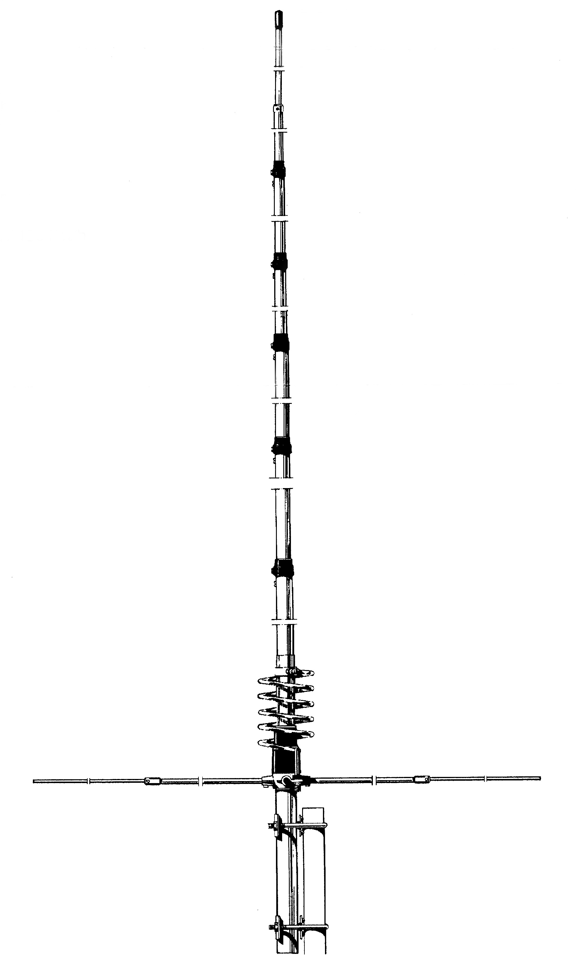 CB základnová anténa, laditelná v pásmu 27-30 MHz. Typ 5/8 GP, 4 radiály. Impedance 50 ohm. Vertikální polarizace, SWR 1,2/27 MHz. Přípojný konektor UHF female. Délka 7230 mm. Hmotnost 2900 g. Průměr montážního třmenu 35-42 mm. Materiál hliník, plast, ocel.